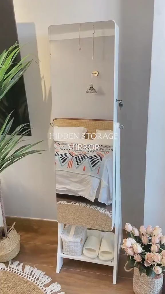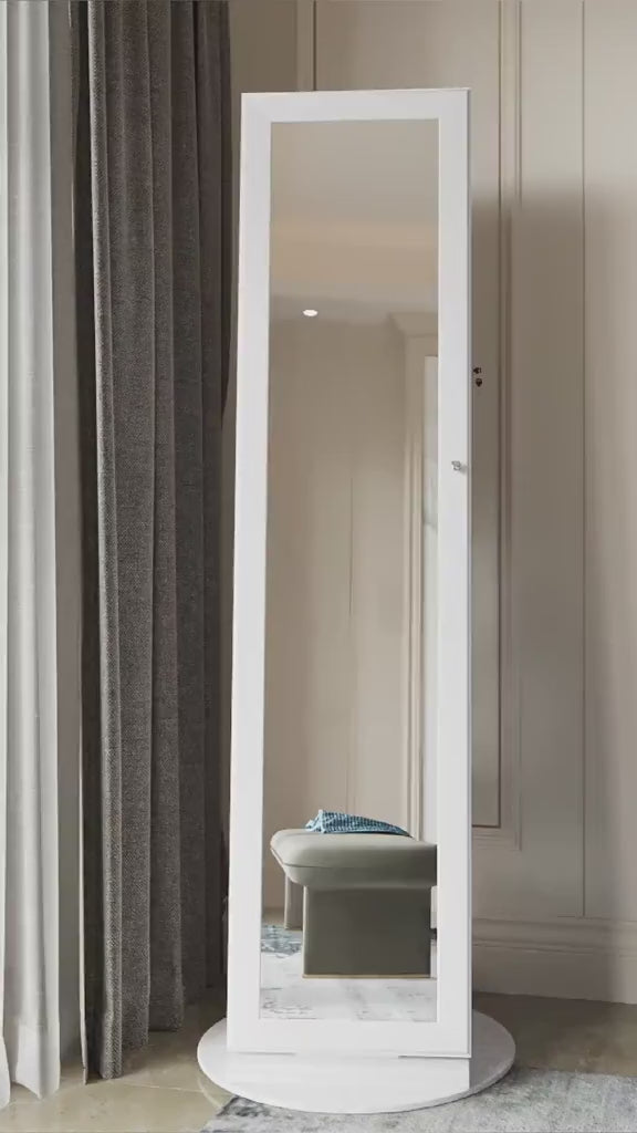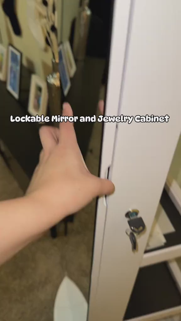 This full-length jewelry cabinet combines sophistication and functionality, providing a sleek black design that fits seamlessly in any bedroom or dressing area.